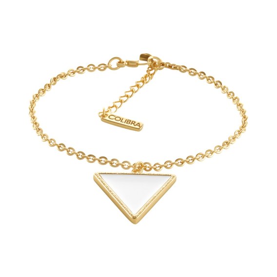 Bransoletka z trójkątną zawieszką to subtelny dodatek o nowoczesnym charakterze. Delikatny złoty łańcuszek ozdobiony geometrycznym detalem z białą emalią tworzy minimalistyczną, a jednocześnie wyrazistą całość. Idealna do noszenia na co dzień - solo albo w połączeniu z innymi bransoletkami, podkreśla styl i dodaje elegancji każdej stylizacji. Długość bransoletki: 17 cm + 4 cm przedłużki
