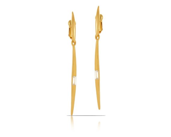 Długie, pozłacane klipsy z kryształkami Preciosa w sam raz na wielkie wyjście lub romantyczną kolację przy świecach. Długość klipsa 8 cm, szerokość 0,4 cm