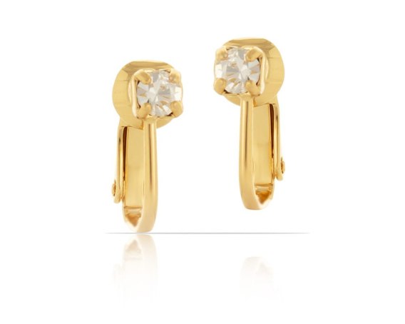Pozłacane, delikatne klipsy, ręcznie zdobione kryształkami Preciosa. Długość klipsa 1,5 cm, szerokość 0,4 cm.
