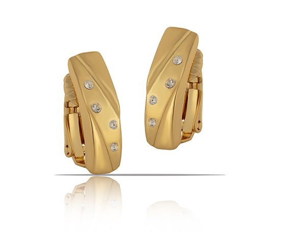 Klasyczny wzór klipsów z dodatkiem kryształków Preciosa. Długość 1,9 cm, szerokość 0,6 cm. Klipsy pozłacane.