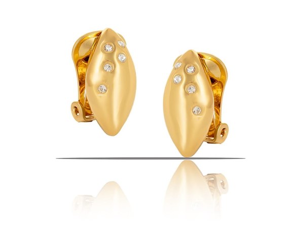 Pozłacane klipsy z kryształkami Preciosa to doskonałe rozwiązanie dla kobiet, które nie noszą kolczyków. Długość klipsów 1,7 cm, szerokość 1 cm.