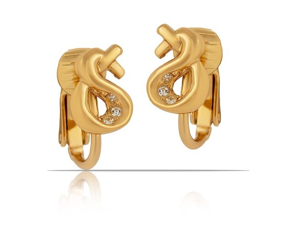 Pozłacane, delikatne klipsy zawijaski, ręcznie zdobione kryształkami Preciosa.