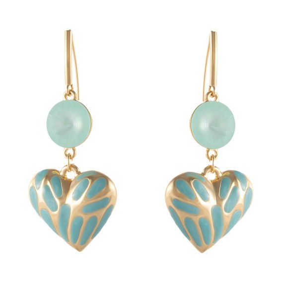 Kolczyki gniecione, miętowe serca z kryształkami (P25/JES/18AU)