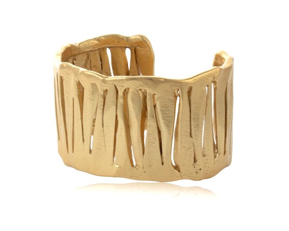 Pozłacana szeroka, sztywna bransoletka z nacięciami prezentuje się efektownie, nadając nadgarstkowi elegancji i wyrazistości. Jej solidna konstrukcja sprawia, że jest trwała i wygodna w noszeniu. Nacięcia nadają bransoletce unikalny wizualny efekt marszczenia, który dodaje jej charakteru i sprawia, że staje się ona niezwykle atrakcyjna. Szerokość bransoletki 3,8 cm. Waga bransoletki 84g.