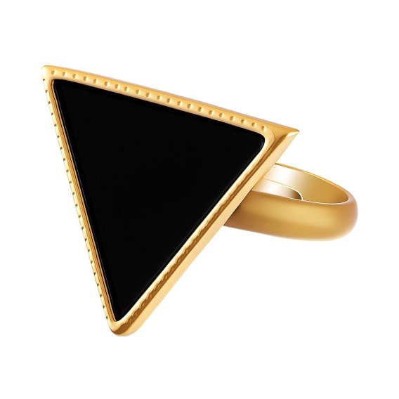 Nowoczesny pierścionek z trójkątnym motywem to połączenie minimalizmu i ponadczasowej elegancji. Złota oprawa wspaniale podkreśla głębię ręcznie malowanej, czarnej emalii, tworząc wyrazisty kontrast. Dzięki regulowanemu rozmiarowi, pierścionek doskonale dopasowuje się do każdego palca, zapewniając komfort i idealne ułożenie. Wielkość ozdoby 2cm/2cm/2cm.