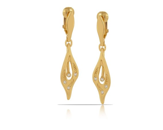Pozłacane, wiszące klipsy ręcznie zdobione kryształkami Preciosa.