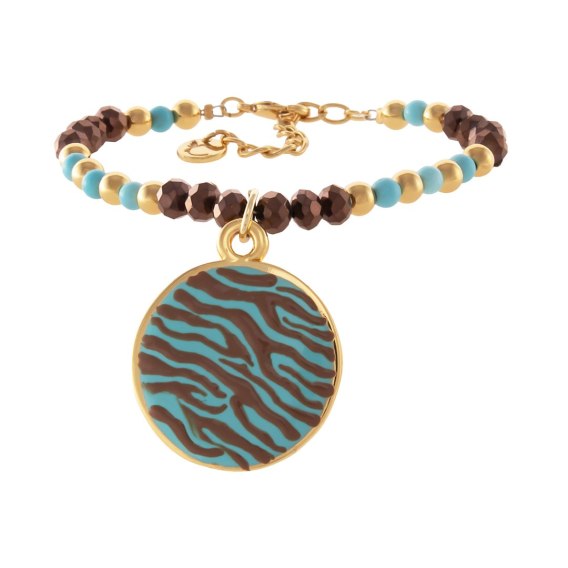 Bransoletka z czekoladowych koralików, turkusów i złotych kuleczek z zawieszką w zeberkę (B25/LAT/155AU)