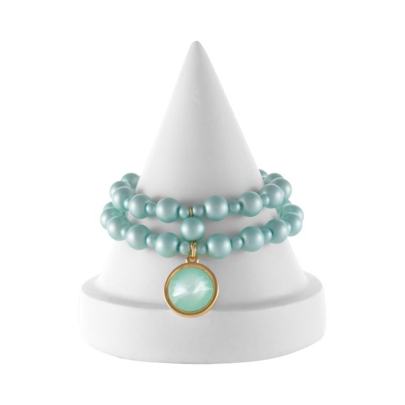 Bransoletka z turkusowych pereł satynowych z kryształkiem soft mint (B25/LAT/131/4AU)