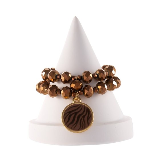 Czekoladowa bransoletka z okrągłą zawieszką w zeberkę (B25/KOR/25AU)