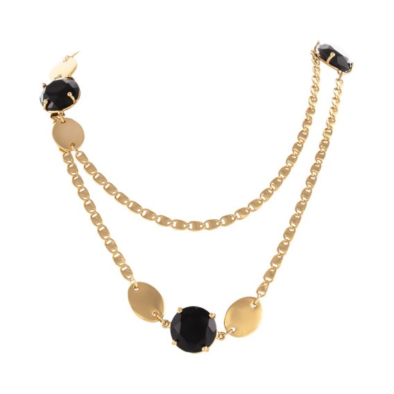 Długi naszyjnik z czarnymi, dużymi kryształkami i owalnymi blaszkami (C25/WIO/53AU)