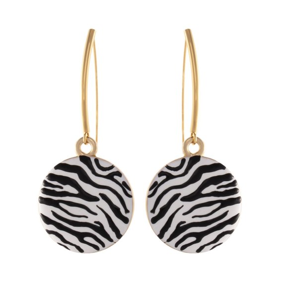 Efektowne kolczyki w kształcie plasterków, ozdobione ponadczasowym wzorem czarno-białej zebry.