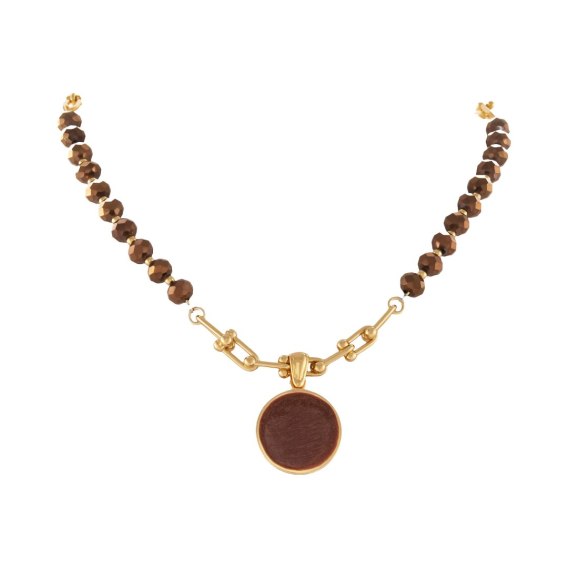 Naszyjnik z czekoladowymi koralikami z plasterkiem (C24/KOR/336AU)