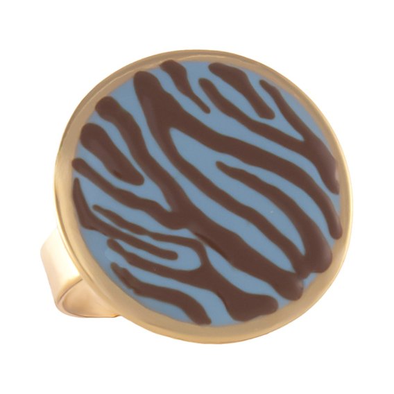 Pierścionek duży niebieski plasterek w czekoladową zeberką (R25/LAT/120AU)