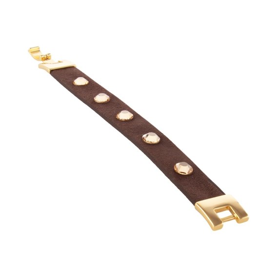 • Skórzana bransoletka w kolorze ciemnej czekolady z kryształkami (LV25/JES/16AU)