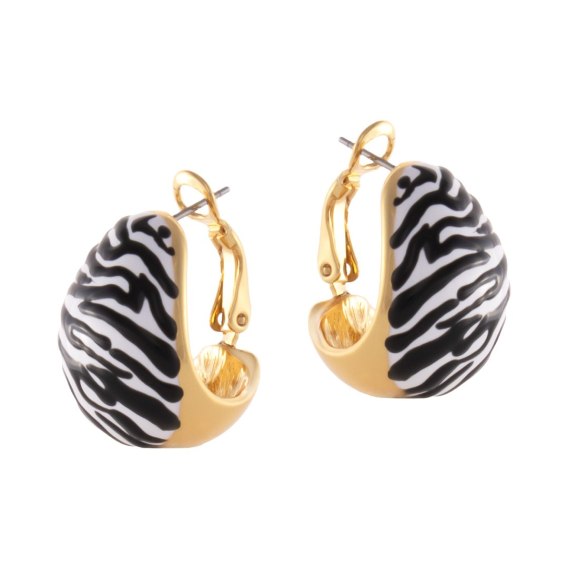 Wypukłe, białe kolczyki w czarną zeberkę (P25/LAT/117/2AU)